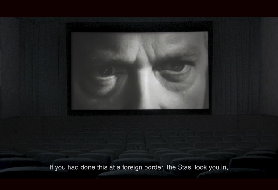 As to narrative more generally, telling stories is something I try to focus on, but it’s intrinsic here given the project’s origins in a novel. Formally, the structure of my video is based on Zweig’s book. In Schachnovelle, Von Basil’s prison narrative is a nested memory, told within a framing story that takes place aboard a boat. So in the video we begin in 1990 when Paul Wagner is first allowed to see his Stasi files, then we move back to 1968 to the core events of his prison term, and then we go back to his present day analysis of his own life. This is mirrored in the images by moving from the projection booth (the space of reflection), to the theater (the space of involvement), then back to the booth and then back to the theater once more. But this method of dismantling Schachnovelle into fragments and then reassembling them was its own struggle, in regard to narrative, since the original film has a tremendous advancing force of storytelling embedded in each shot: dramatic lighting, extreme angles, stormy weather—the works. Oswald was a skillful director, and so much of the imagery in the film—and its increasingly tense, nervous, gothic score—was built to push this main character toward a resolution of crisis that my main character doesn’t actually get.